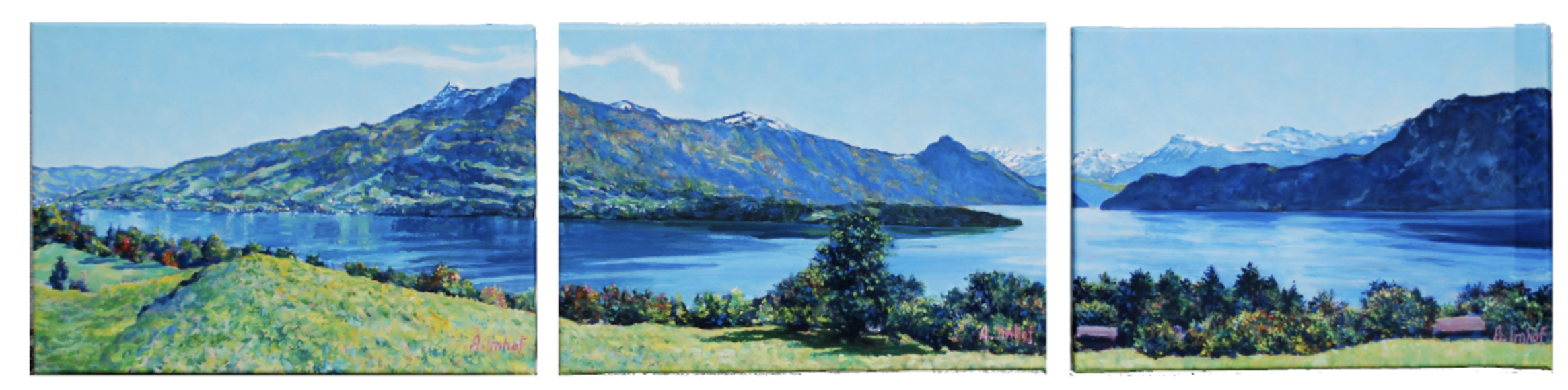 Neben der klassischen Malerei stellt die Holzschnittgrafik eine wichtige Technik in Imhofs Werk dar, die er über die Jahrzehnte kontinuierlich verfeinerte. Den grossformatigen Serien (oft 4 verwandte Sujets in limitierter Auflage zu 135 Stück) stehen dabei Holzschnittkarten (A6) in unlimitierter Auflagenzahl gegenüber. Ungewöhnlich für die Schweizer Kunstszene ist dabei der starke Fokus auf Mehrfarbenholzschnitte mit bis zu 12 Farben (oft zusätzliche Farben durch Weiterbearbeitung von Grundplatten während des Druckprozesses, sog. Eliminationstechnik).